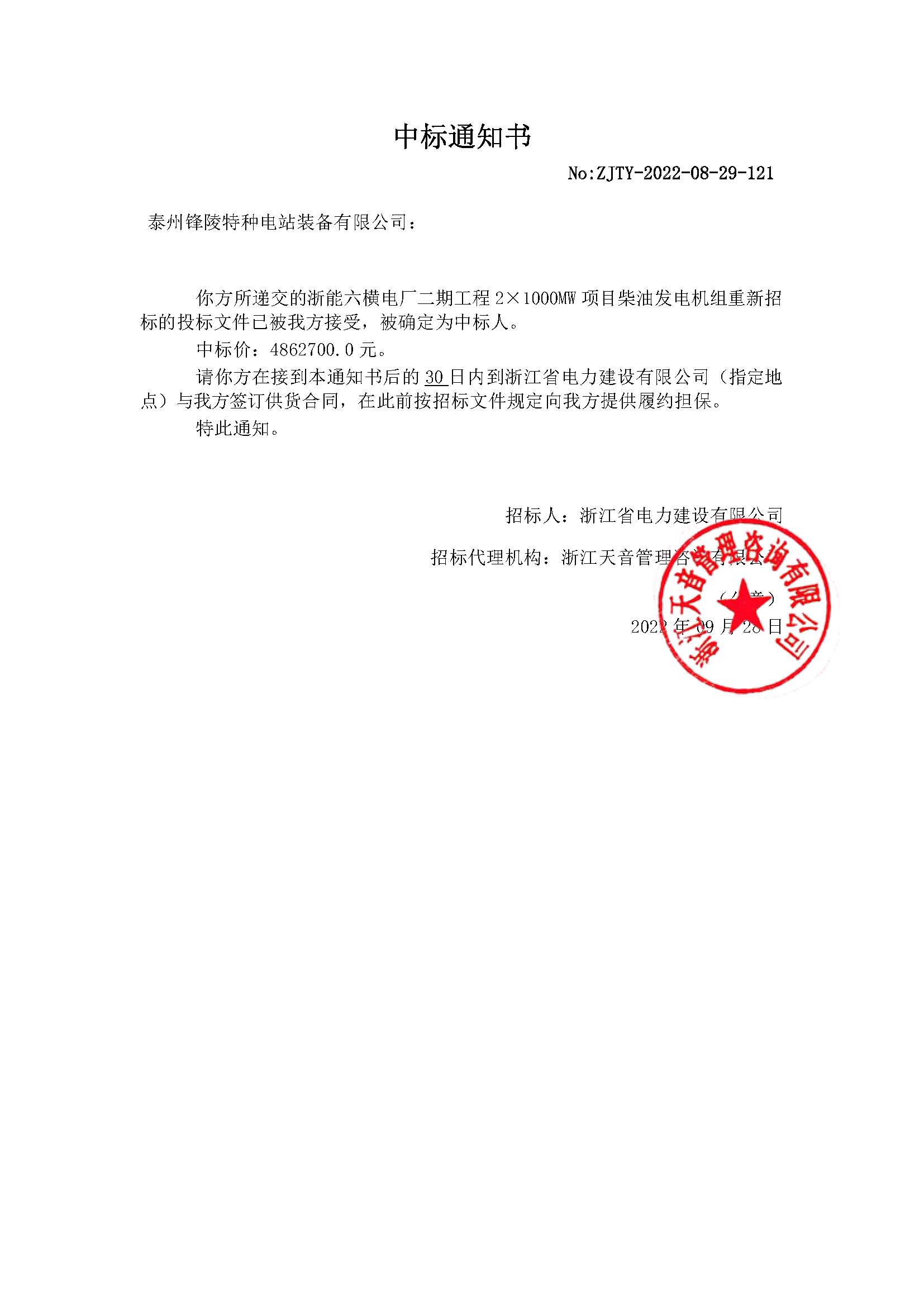 近日,金通靈控股子公司泰州鋒陵特種電站裝備有限公司收到浙江省電力建設(shè)有限公司浙能六橫電廠二期工程2×1000MW項(xiàng)目2...